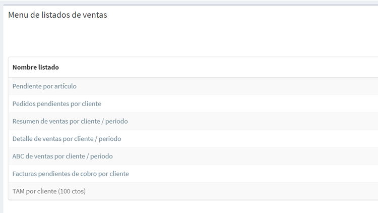 El menu de listados es modular y se puede ir personalizando tantos listados como sean necesarios.
